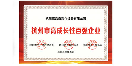 Gaopin Automation won the honorary title of "Hangzhou Top 100 Enterprises with High Growth"