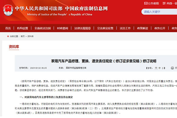On March 14, the State Administration for Market Supervision and Administration issued the Provisions on the responsibility for the repair, replacement and return of household automobile Products (revised draft), which will include the powertrain and main parts of household electric vehicles into the "three guarantees" responsibility of automobiles, especially batteries or motors, and can be returned and replaced if serious quality problems occur, such as battery fires.