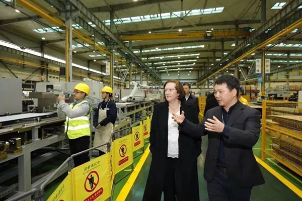 Judy, global President of Otis, visits the elevator assembly line designed and developed by Gaopin